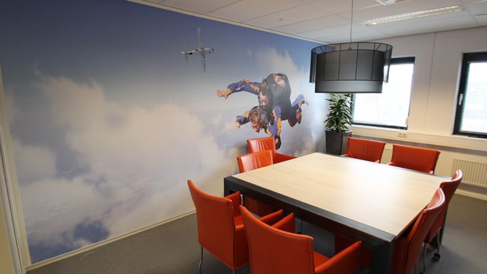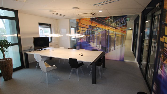 M2 Printing heeft onder andere de muren in de kantoor- en vergaderruimtes voorzien van full colour geprinte (naadloze) wandbekleding. De glazen kantoorwanden zijn voorzien van verschillende raamfolies (waaronder glasheldere interieurfolie) en geprinte gordijnen.