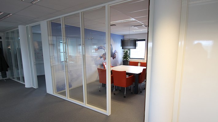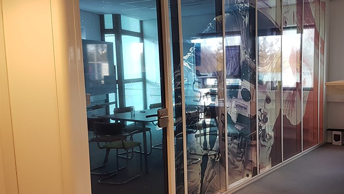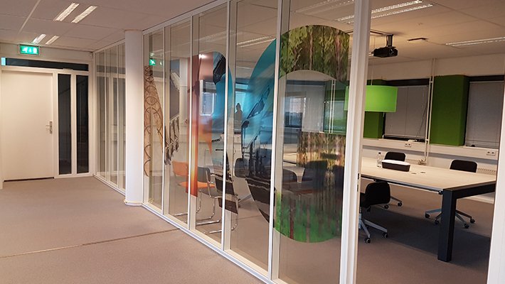 • Glasheldere printfolie biedt zeer veel mogelijkheden voor kantoorruimtes. Doordat de folie 100% glashelder is, lijkt het alsof er direct op de glaswanden/ramen is geprint. Met onze moderne VUTEk printers is het mogelijk om de kleinste details, stipjes of verloopjes te printen in zeer hoge resolutie. Het is zelfs mogelijk om aan twee zijden, een verschillende beeld te printen! Bovendien is het materiaal milieuvriendelijk en bevat het geen pvc.